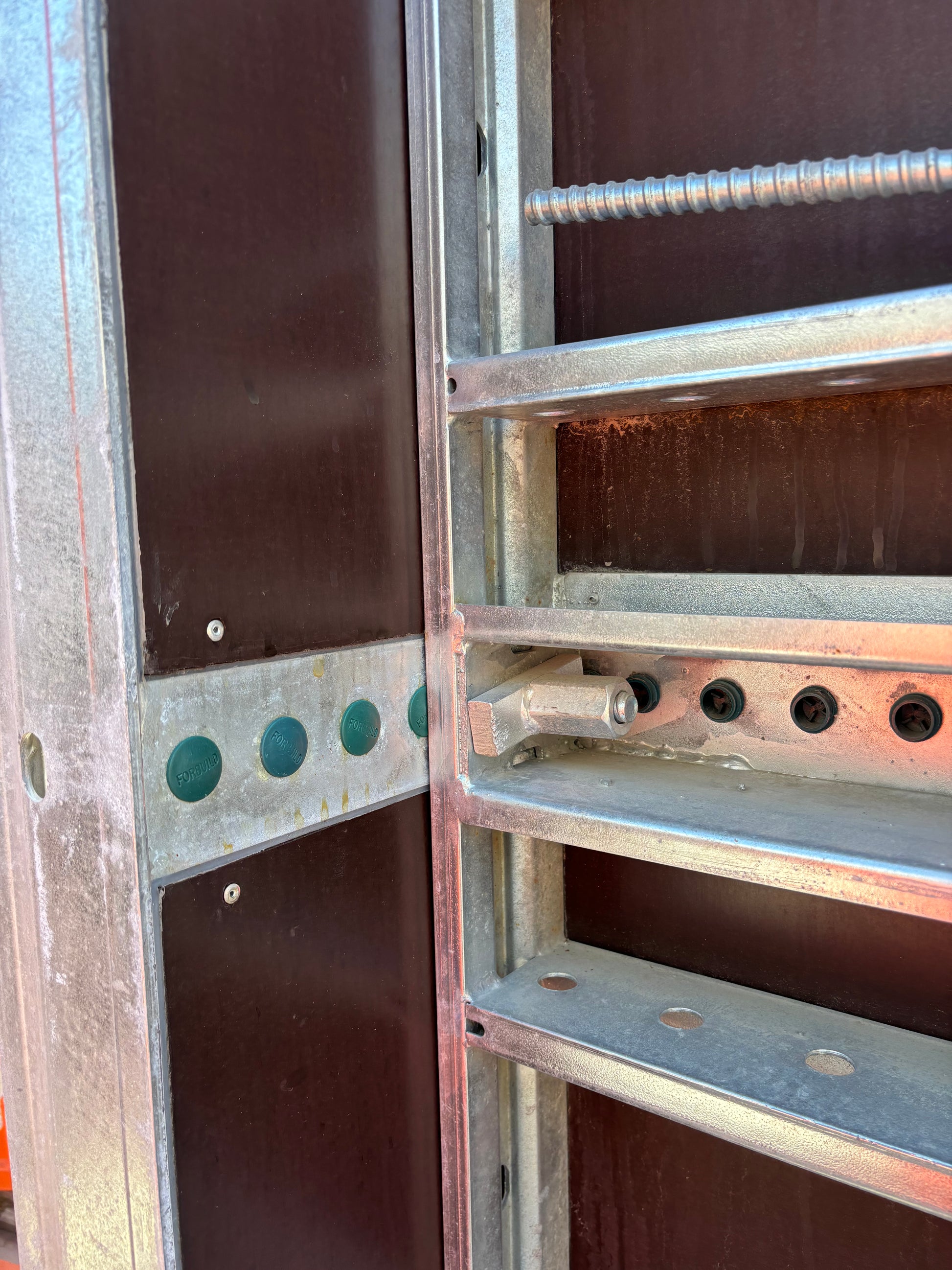 - Profilele din oțel cu mai multe găuri, distanțate la fiecare 5 cm pe fiecare placă, permit conectarea acestora în sensul acelor de ceasornic în formă de pale de moară de vânt, creând o structură dreptunghiulară rigidă și durabilă a unui stâlp.